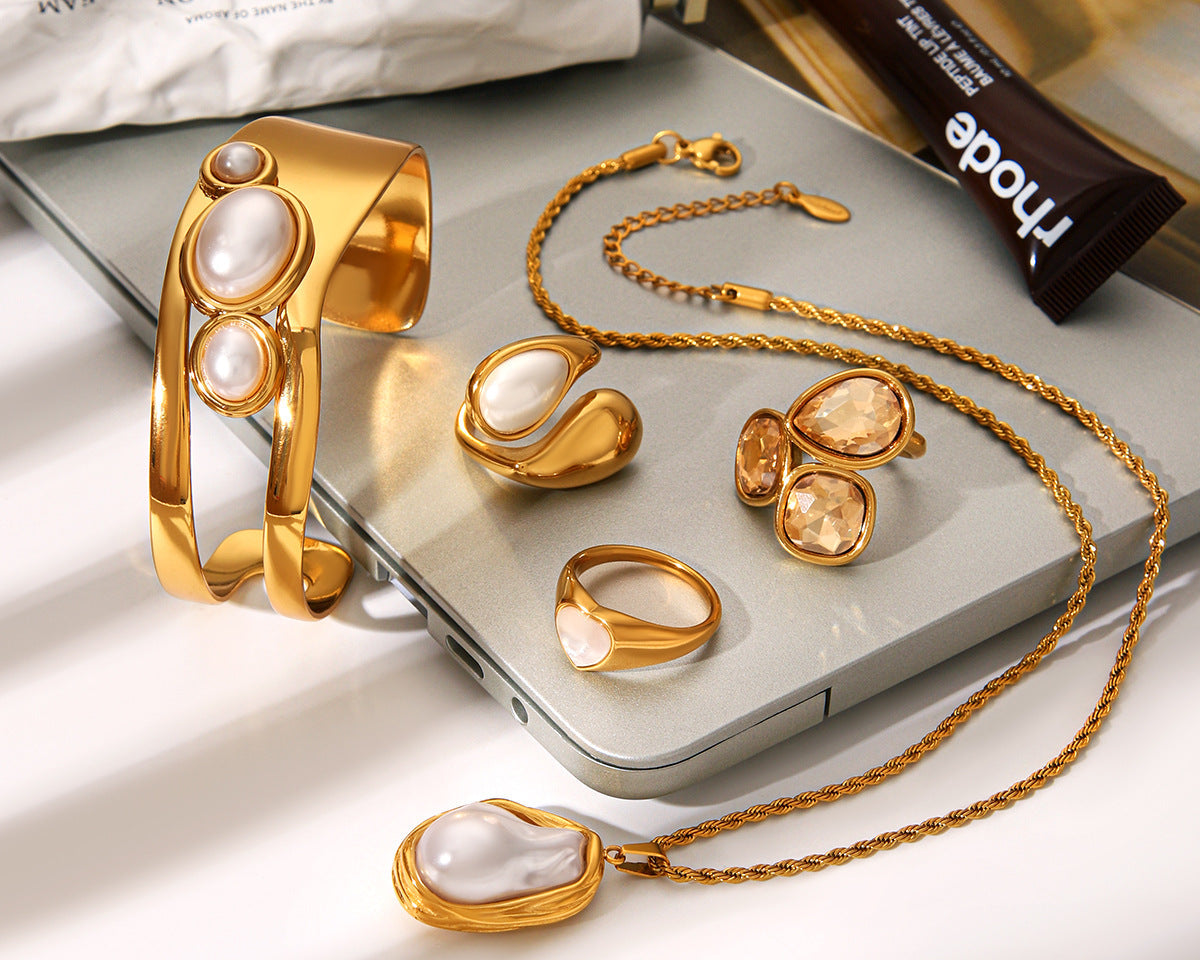 Suvarna Antique Gold Neckpiece with Jhumkas