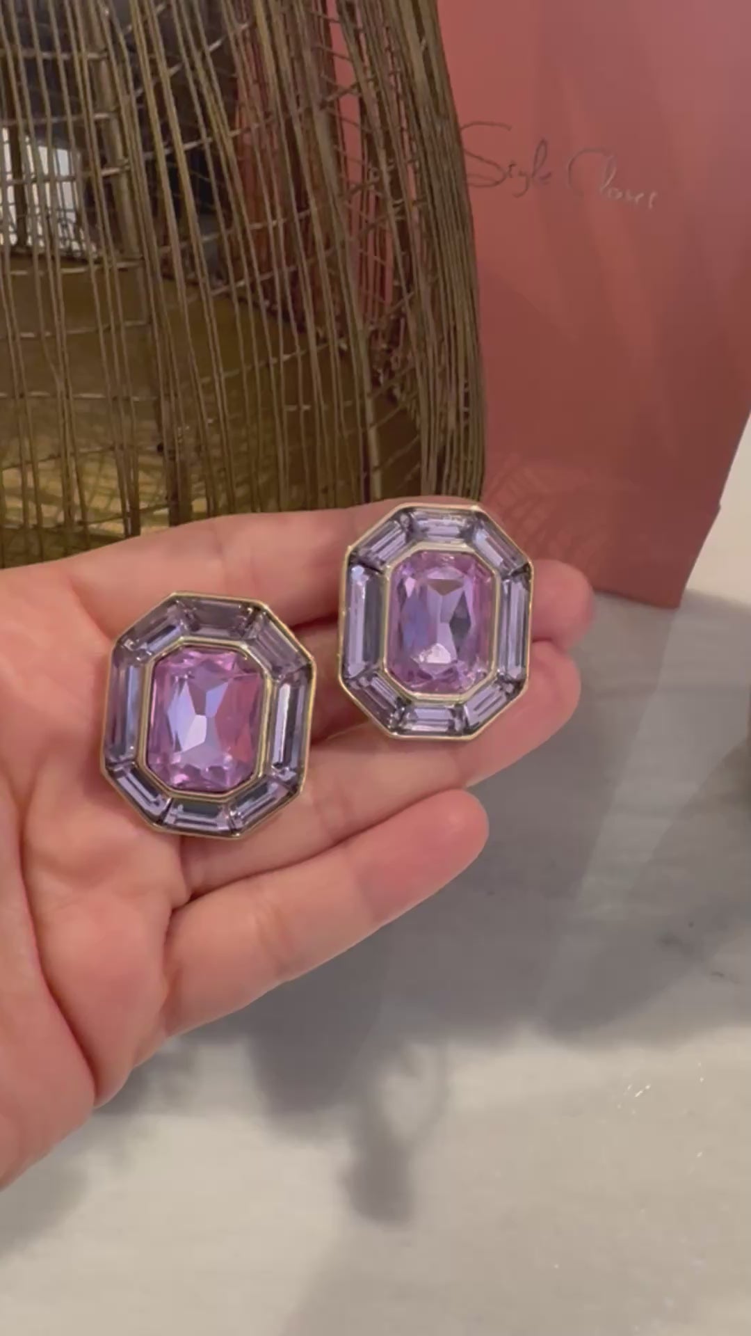 These crystal gold plated lilac studs are the perfect statement piece for any occasion. The unique design adds a touch of elegance and the gold plating gives them a luxurious feel. Dress up any outfit with these stunning studs, guaranteed to make you stand out.