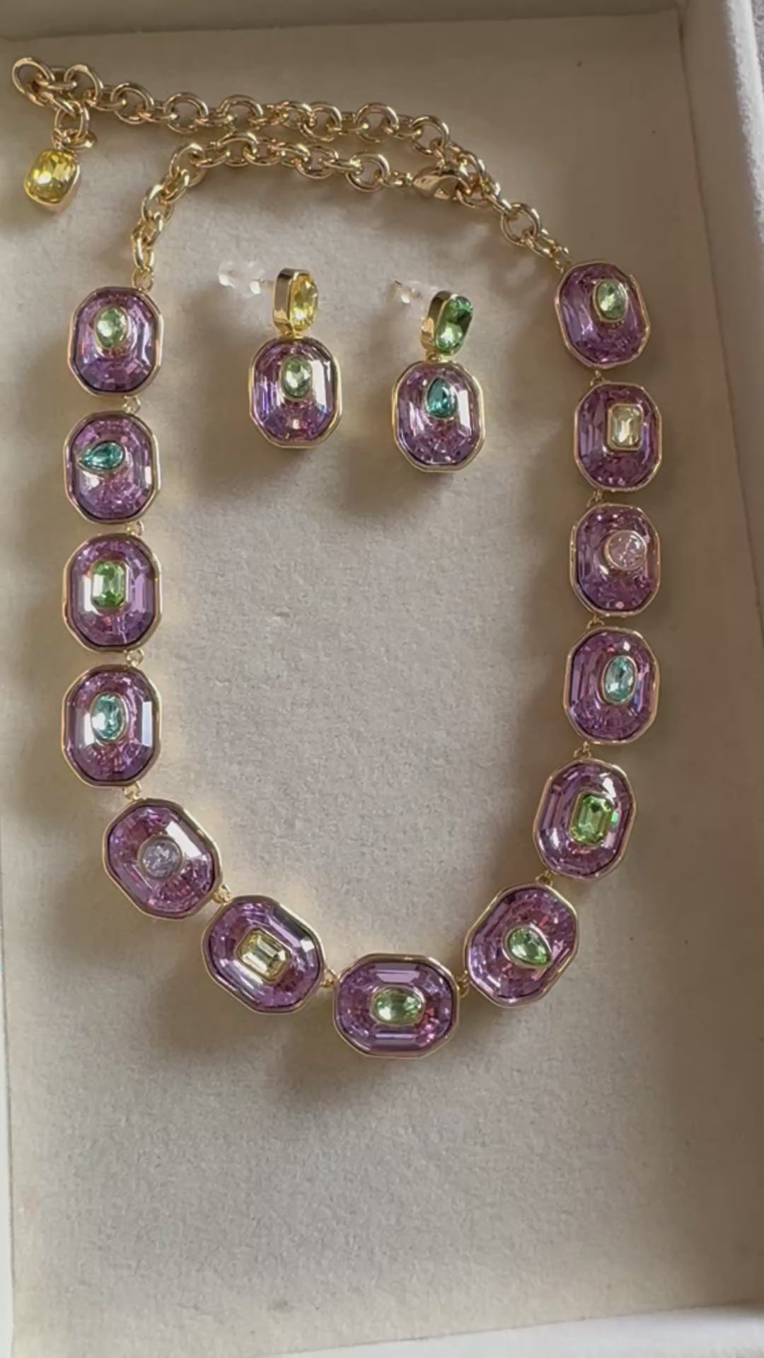 Multi Colour Crystal Luxury Neckpiece with earrings